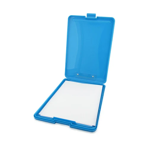 Tabla porta-papeles con clip metálico, compartimento para guardar papeles tipo carta.